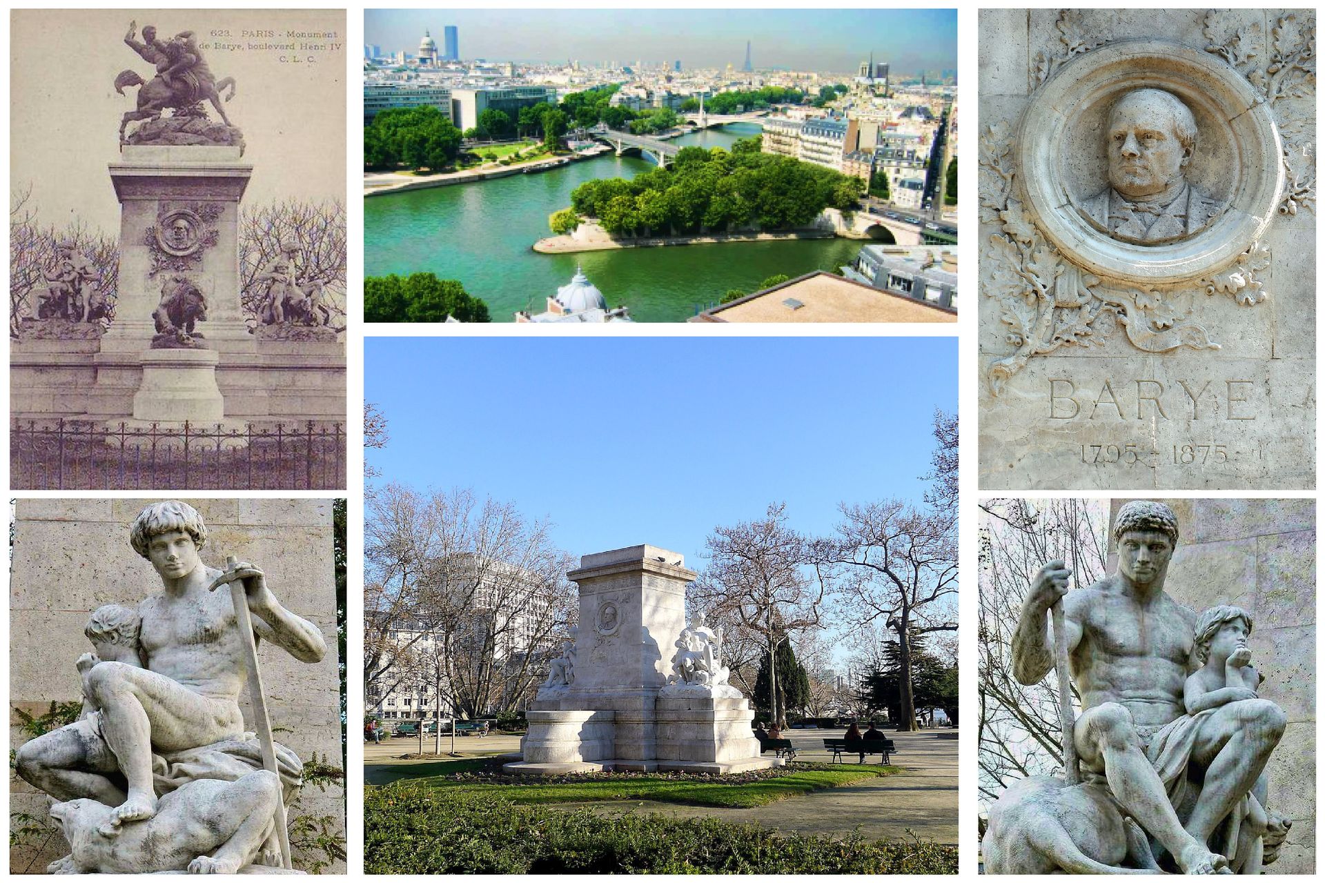 Square Barye of the Ile Saint Louis -not far from the great Garden plants where Antoine-Louis Barye (1796/1875) loved watching the animals before modeling them- high monument, built by a US warrant in 1892, celebrating the talent of the famous animal sculptor.